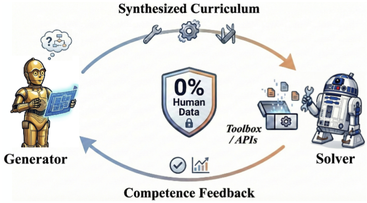 A self-play RL framework for training general-purpose tool-calling agents from scratch, without any human data.